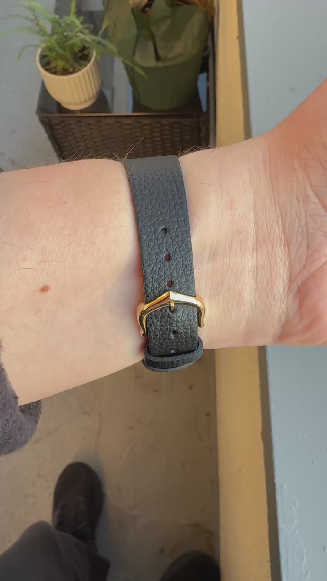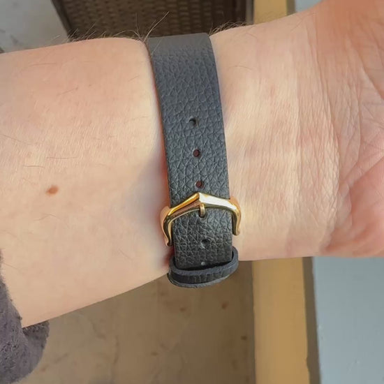 Gauthier Matte Black 17mm strap with gold plated Cartier buckle.