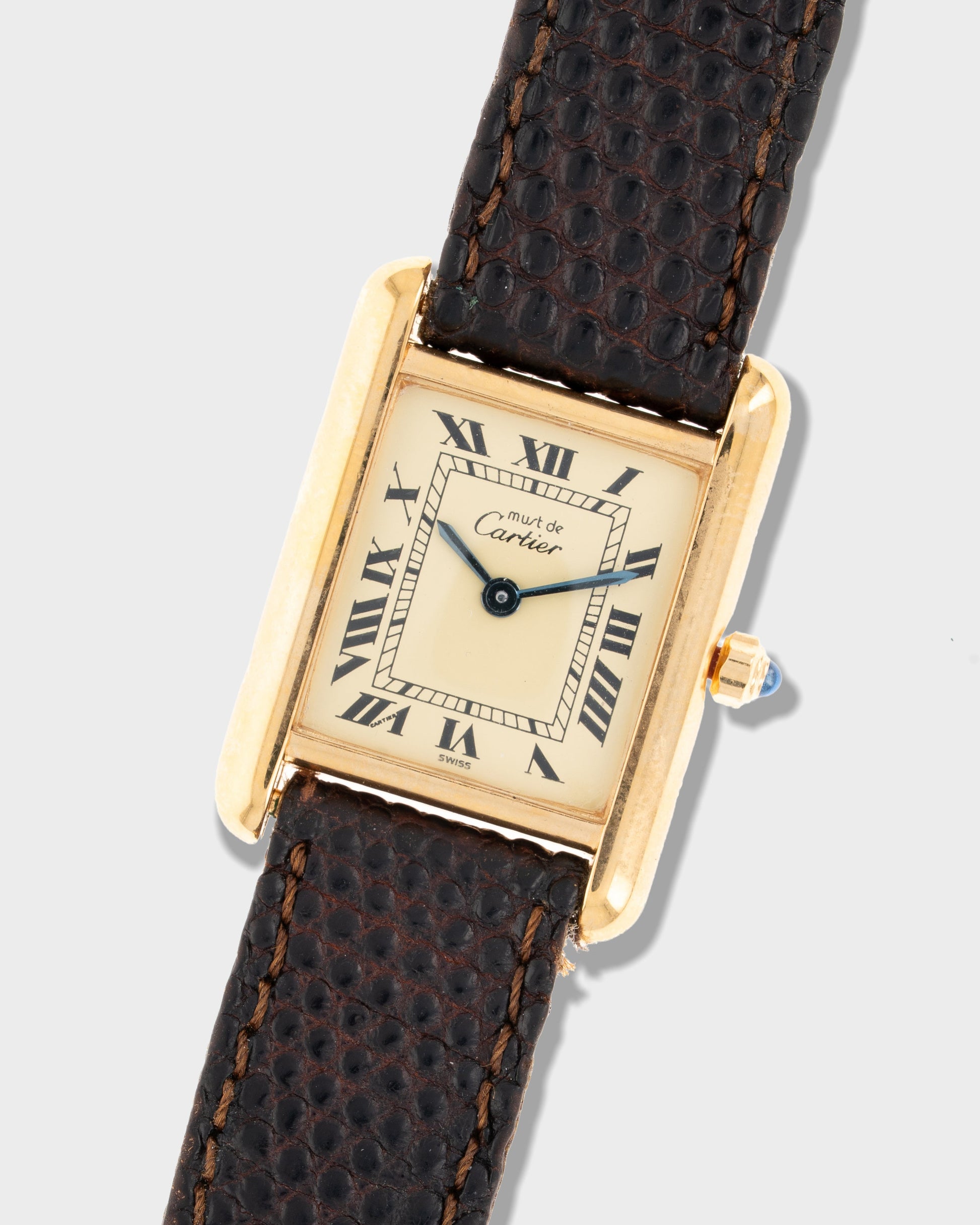 The Cartier Tank is one of the most iconic watch designs ever created. It was first conceived in 1917 and made available in 1919, and its timeless rectangular form has transcended generations of style. Introduced as a more attainable take on the classic, the Must de Cartier line featured vermeil cases (18K yellow gold plated over solid sterling silver) and creative dial variations. This 'Lemon' dial example features Cartier’s signature Roman numerals and railroad minute track. Its simplicity captures all of the enduring charm of Cartier design in a distinctive and collectible expression for less than its solid gold counterparts. The original Cartier high grade manual-wind calibre is based on the highly respected and reliable ETA 2512-1 movement, so this timepiece is a workhorse as well.